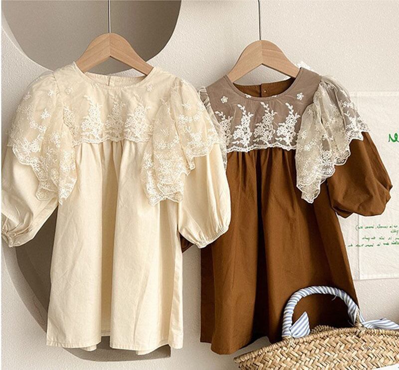 春新作 韓国風子供服 キッズ 3-8歳ガール シフトドレス ワンピース 花柄レース フリル ワンピ 7-17