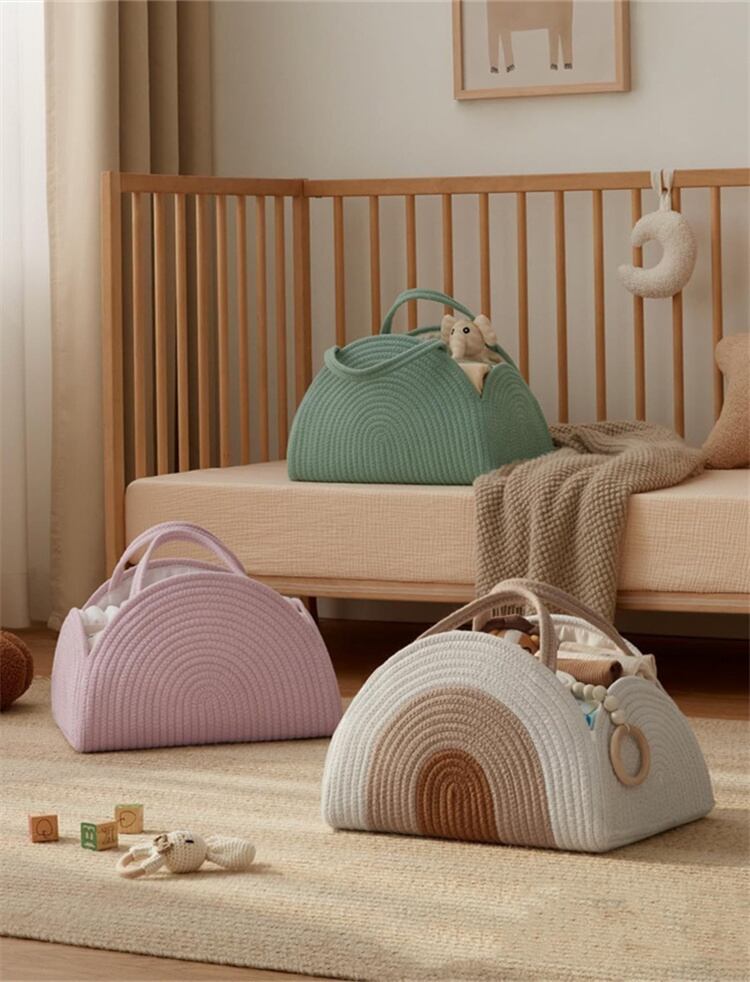 この柔らかく丈夫な綿ロープ製手提げ収納バスケットは、しなやかながらもしっかりとした形状をキープ。内側の取り外し可能なポケット付きで、衣類・おもちゃ・小物・アクセサリーなど多用途に大活躍!ほどけない編み込み技術で長く愛用でき、すっきり自立するデザインがお部屋を整然と見せます。軽量で持ち運び楽々、洗濯時もコンパクトに畳めて便利。ナチュラルな風合いがインテリアに溶け込み、忙しいママの家事整理やお子様のお片付け練習にも最適です。