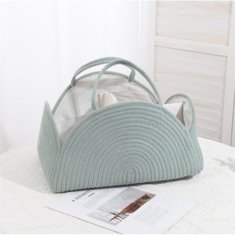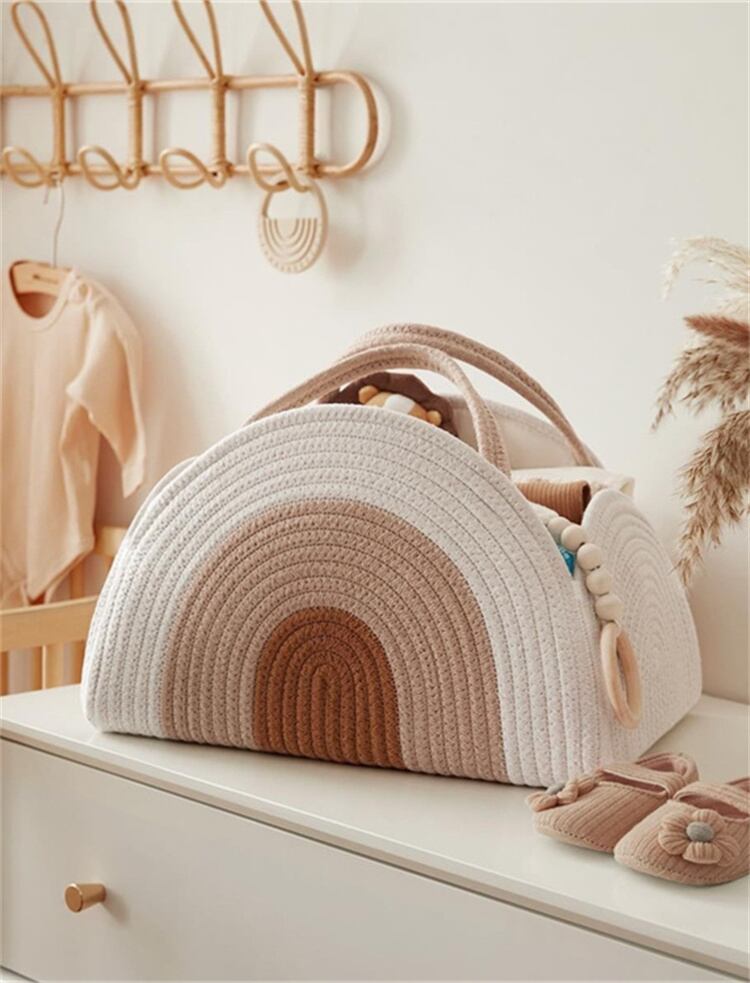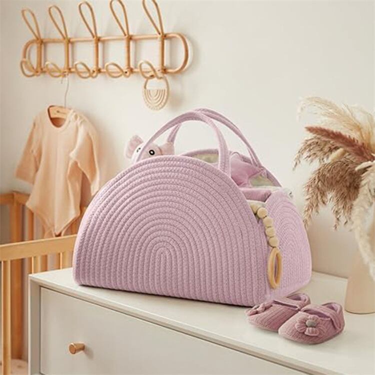 【37*27*22cm】綿ロープ製 おしめ収納バスケット ママバッグ&通勤用手提げかご