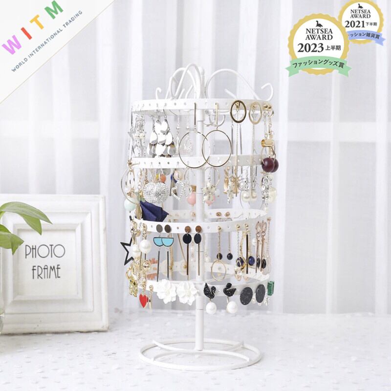 ピアス収納台 展示台 回転式 アクセサリー収納 4層 スチール 大容量