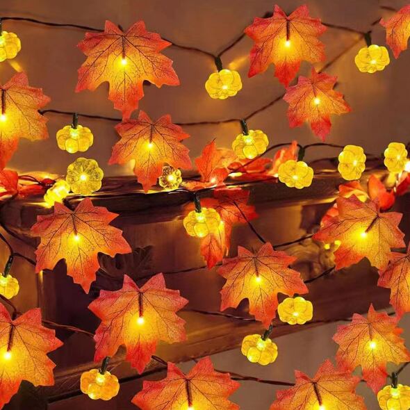 オレンジの光がムード感漂う カボチャと紅葉のLEDライト