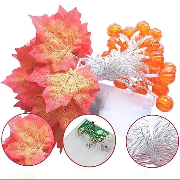 【6M40灯】ハロウィンデコ かぼちゃ カボチャ 楓 紅葉LEDライト 電池式 イルミネーション パーティー イベント
