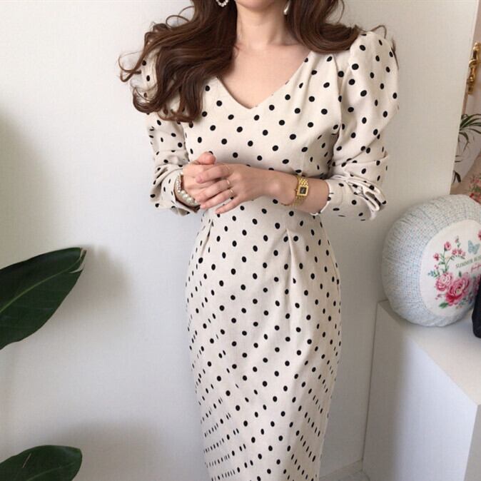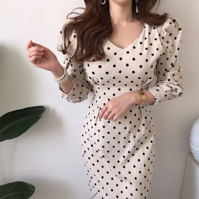 2025年春新作 ワンピース レディース ドット柄 Vネック コーデュロイ エレガント オシャレ
