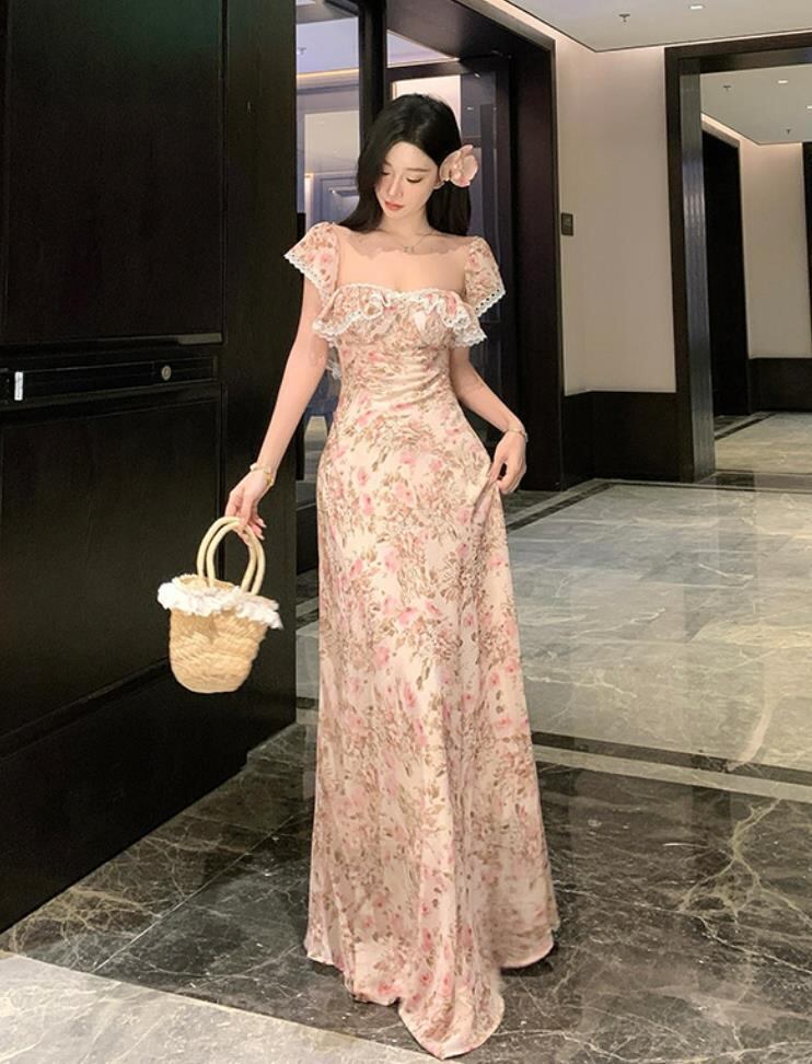 2025春夏新作 女 レディース 花柄 ロング ワンピース 台型スカート