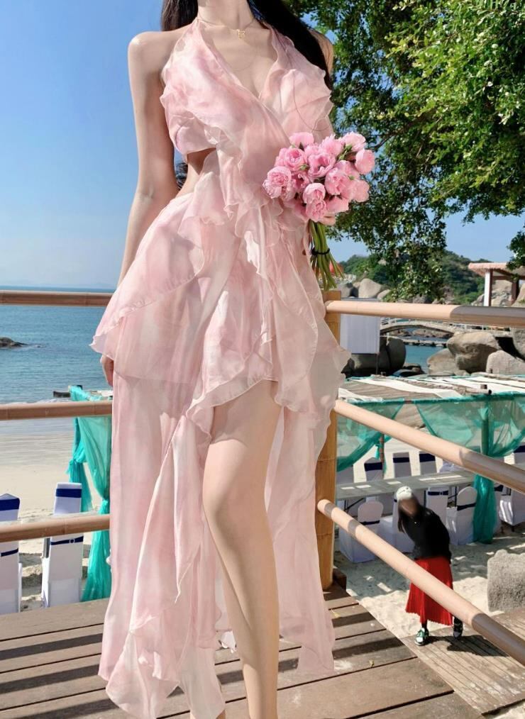 2025春夏新作 女 レディース 袖なし 吊りスカート ロング ワンピース 台型スカート