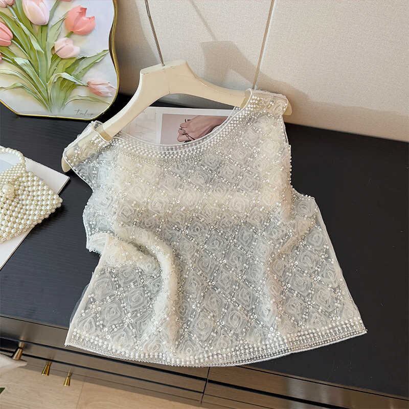 トップス ベスト ノースリーブ タンクトップ クルーネック ラウンドネック レディース