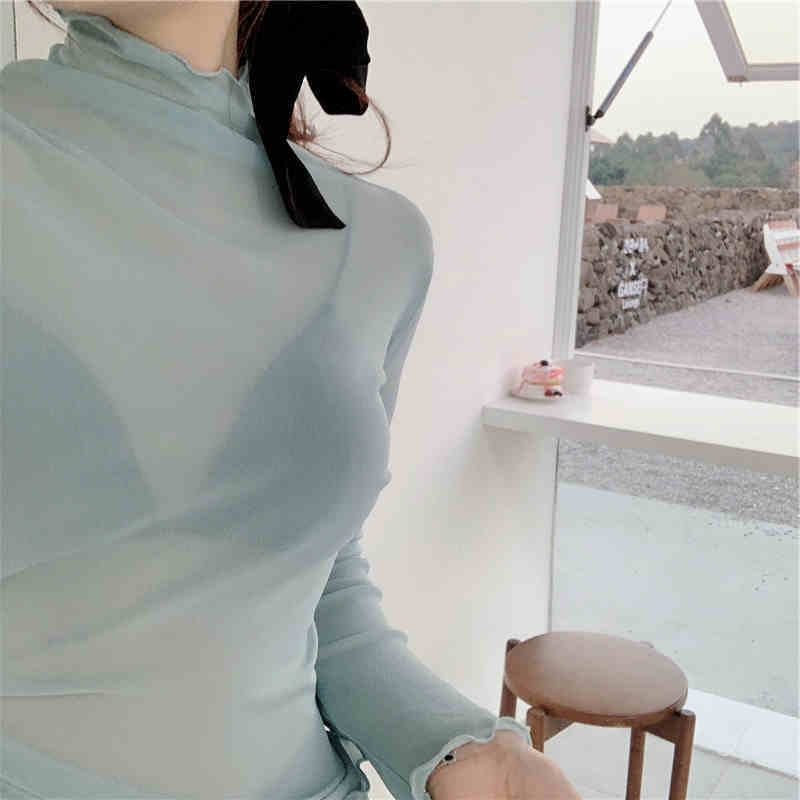 商品名:トップス シャツ カットソー 薄手 シースルー ロンT Tシャツ リブネック レディース