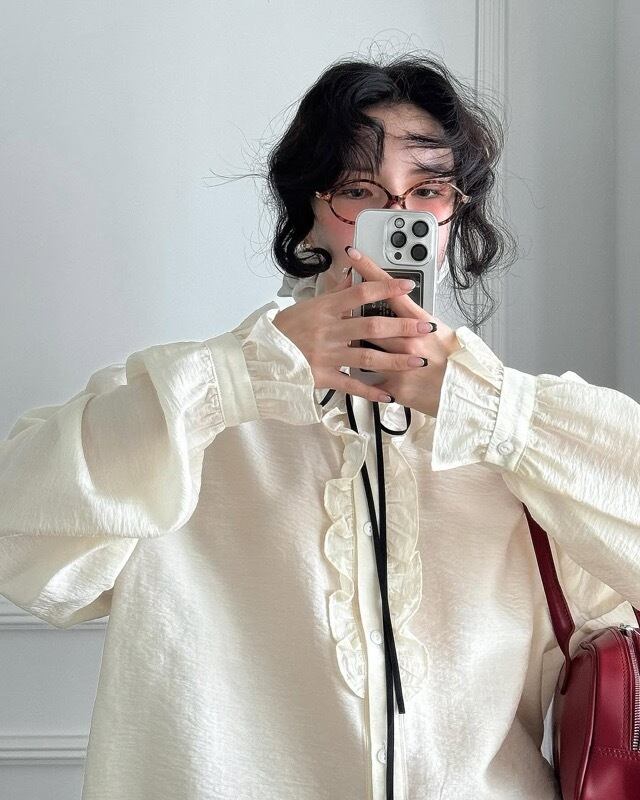 軽やかな薄手素材を使用した長袖ブラウス!エレガントなフリルデザインとリボンが、女性らしい雰囲気を引き立て、フレア袖が華やかさをプラスします。カジュアルなスタイルにもぴったりでありながら、特別なお出かけにも効果的な印象を与える一着です。また、デイリーユースからちょっとしたおしゃれまで幅広く活躍するアイテムとしておすすめです!