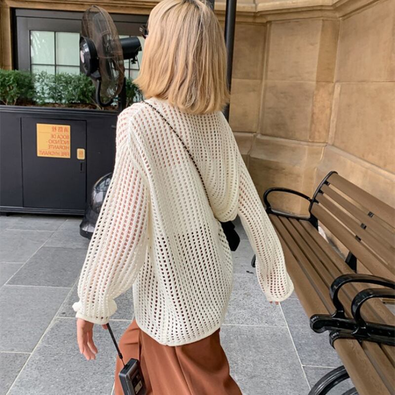 2025新作 透かし編み メッシュ ニット 長袖 カギ編み 透け感 抜け感 サマーニット