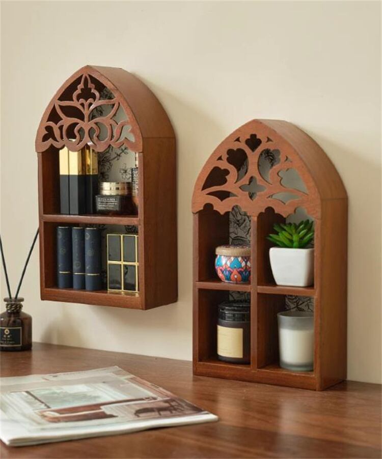 木製 北欧風 マルチレイヤー 壁掛け収納ラック 多機能 雑貨収納 インテリア