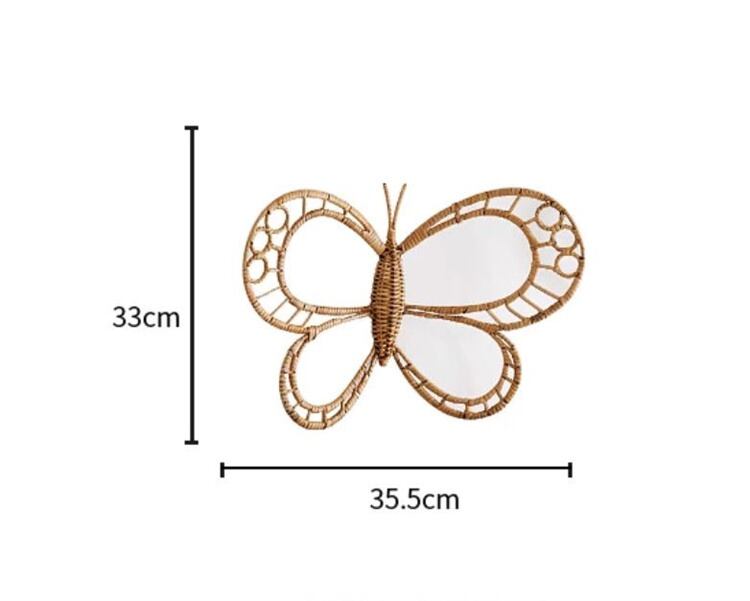 北欧インテリア 藤編み蝶装飾 壁掛け写真小物 ナチュラル壁飾り 手作りクラフト