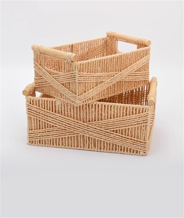 紙紐の温もりある質感でインテリアに馴染みやすく、角部分は丸みを帯びた安全設計。本やおもちゃなどもすっきり収納できます。アウトレット対応可能な二層式タイプも展開中です。