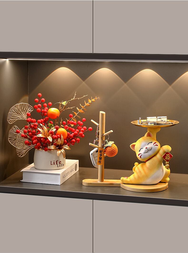 【02】猫オブジェ 玄関収納 鍵置き キーホルダー モダンオブジェ