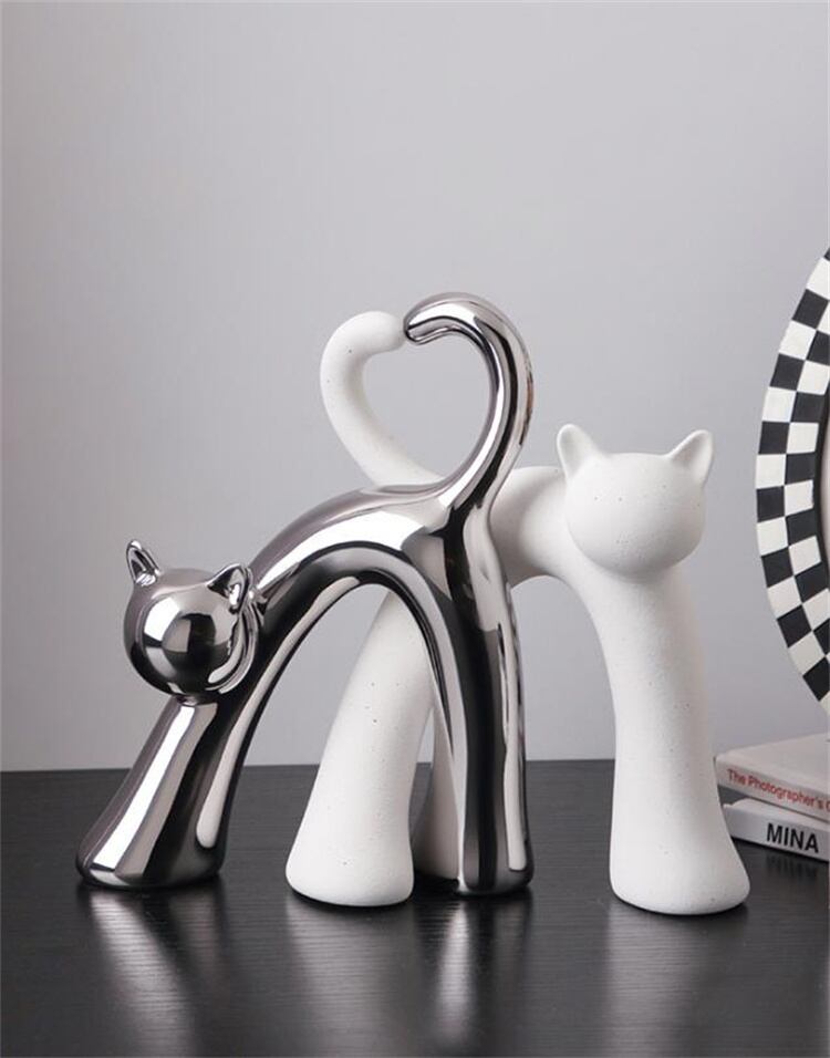北欧風クロスチューブ陶器猫オブジェ リビングルーム&酒棚用 おしゃれ