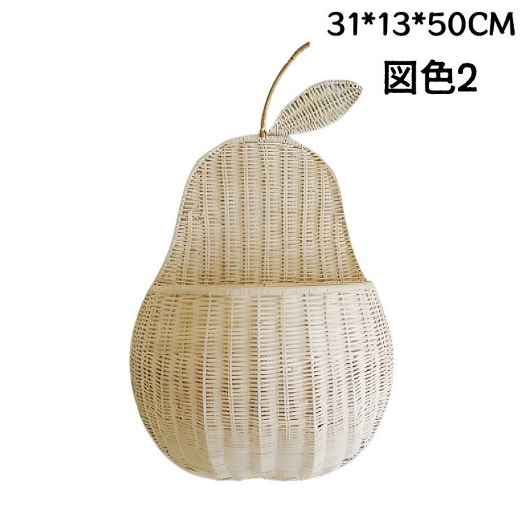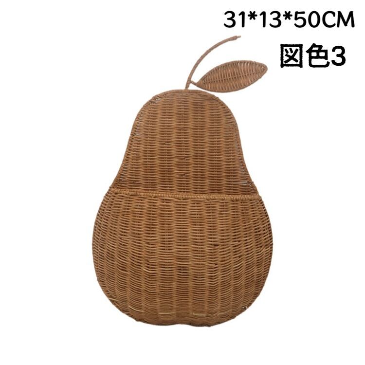 天然素材 ハンドメイド藤編み 雪梨モチーフ壁掛けバスケット 北欧風収納ラック 子供部屋整理
