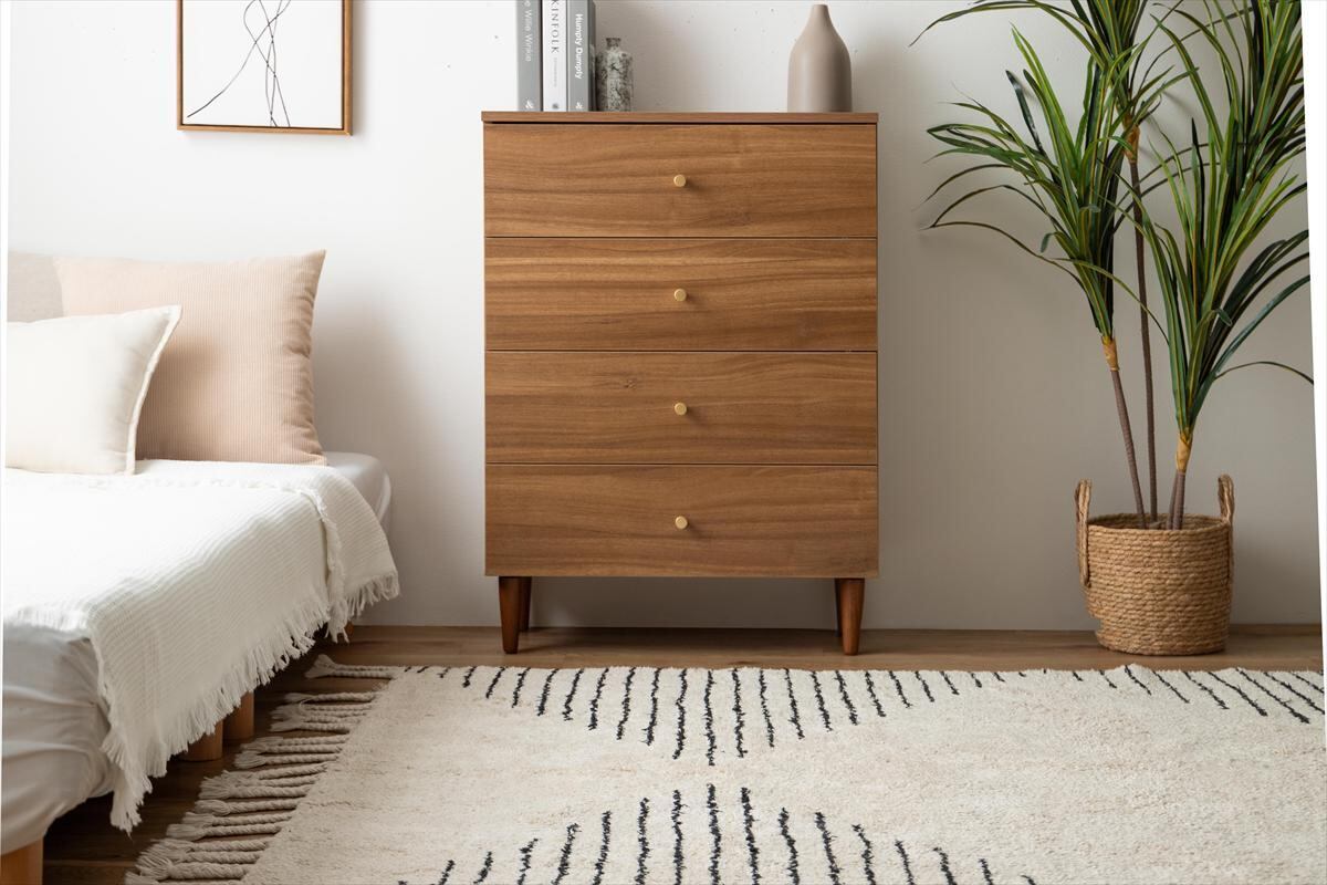 木の温かみを感じるリアルな木目調とゴールドのあしらいが目を惹く『Lucas(リュカ)』シリーズのチェスト