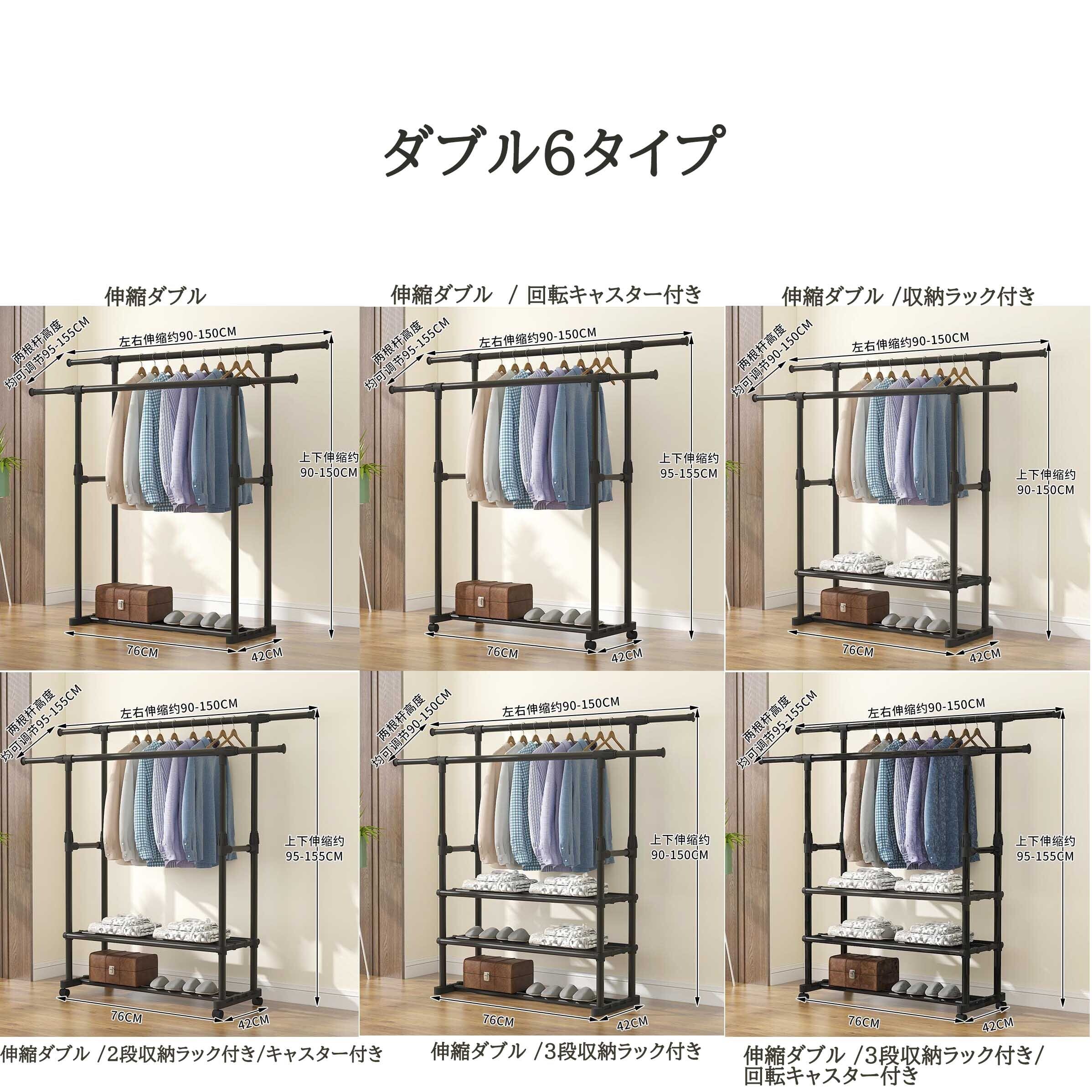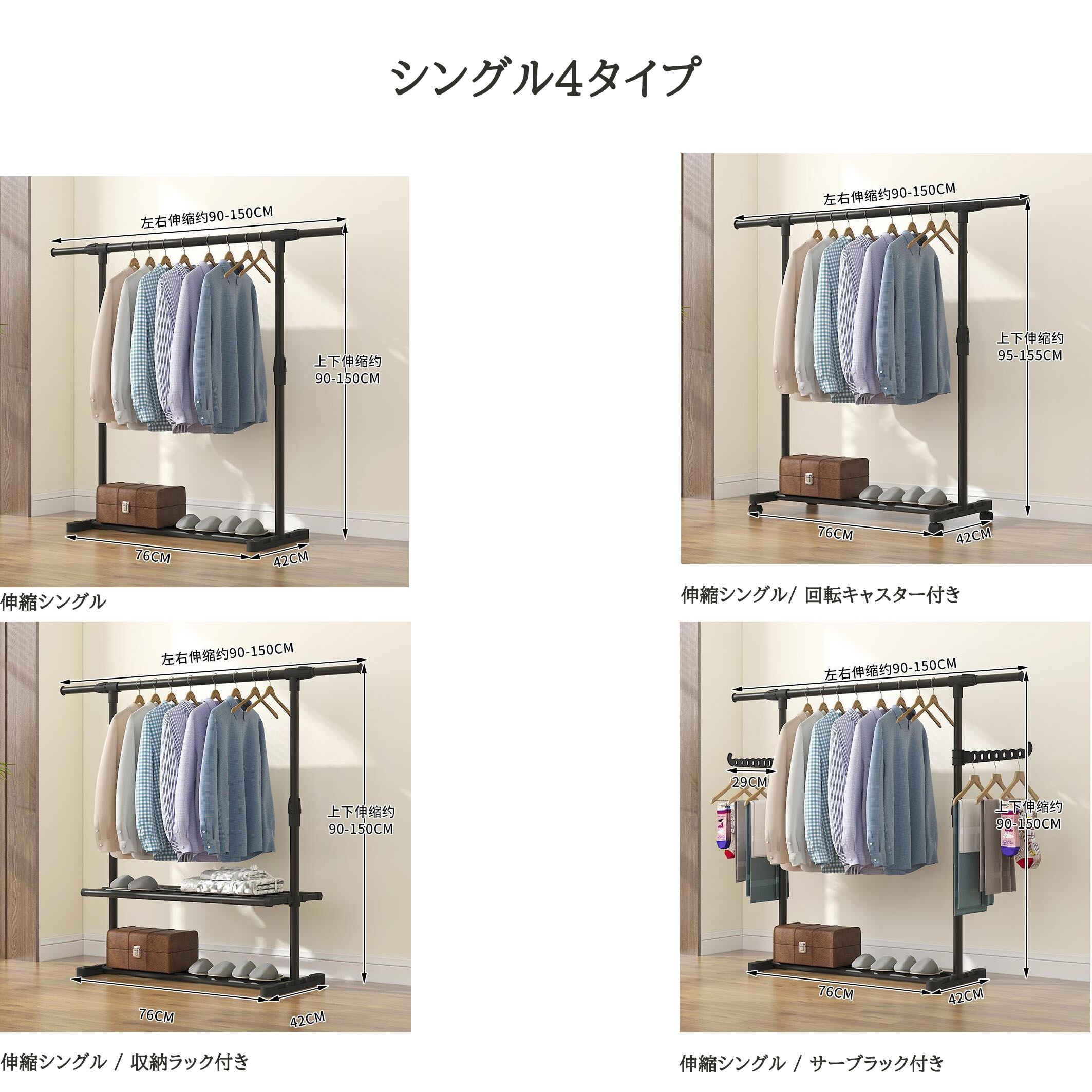 ・タオルラック付き、回転キャスター付き、ハンガーシングル&ダブルなど選べます。