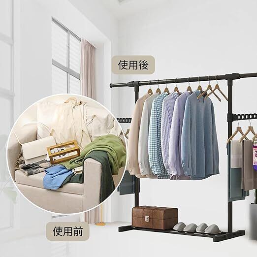 【伸縮ダブル / 収納ラック付き】物干しラック 床置き物干しラック たてよこ伸縮可能 バリエーション豊か 衣類省スペースラック