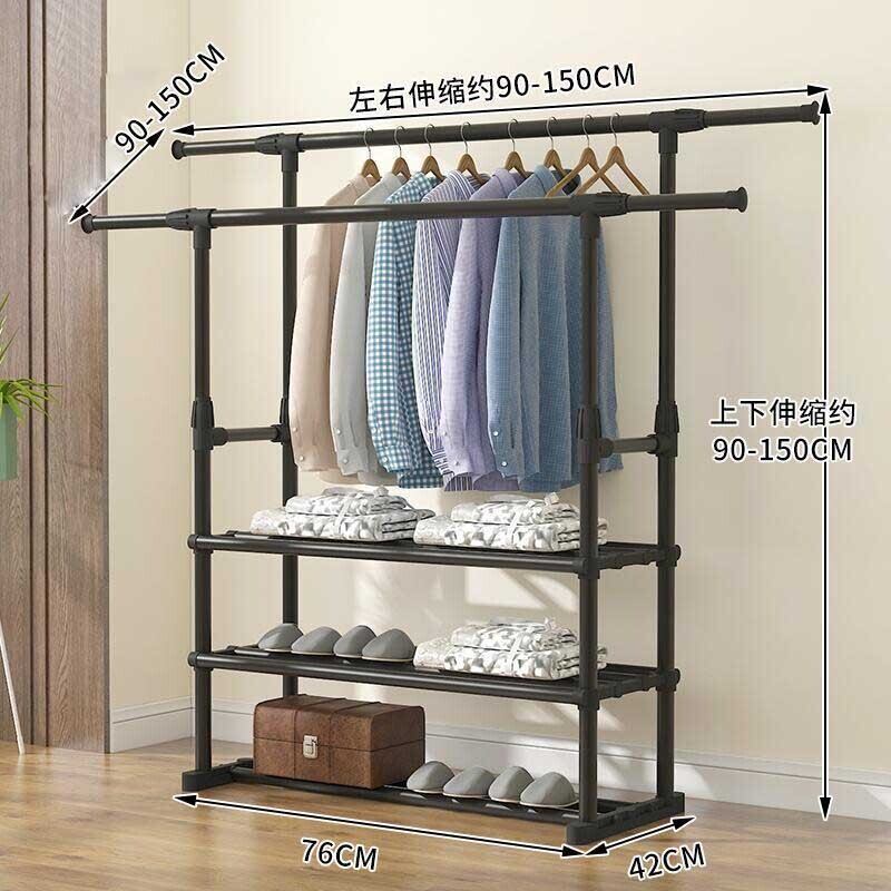 【伸縮ダブル / 3段収納ラック付き/ 回転】物干しラック 床置き物干しラック たてよこ伸縮可能 バリエーション豊か 衣類省スペースラック