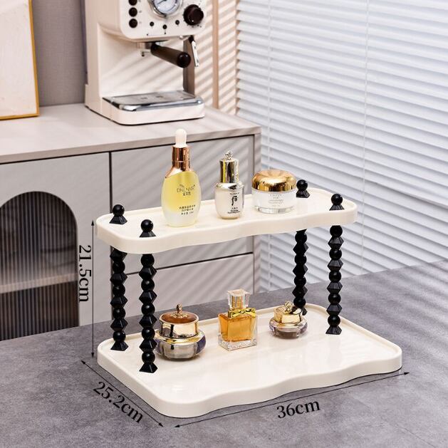 【2段/ワイド】小物ラック 小物トレイ シェルフ 洗面台収納 化粧品収納 ディスプレイ 調味料ラック