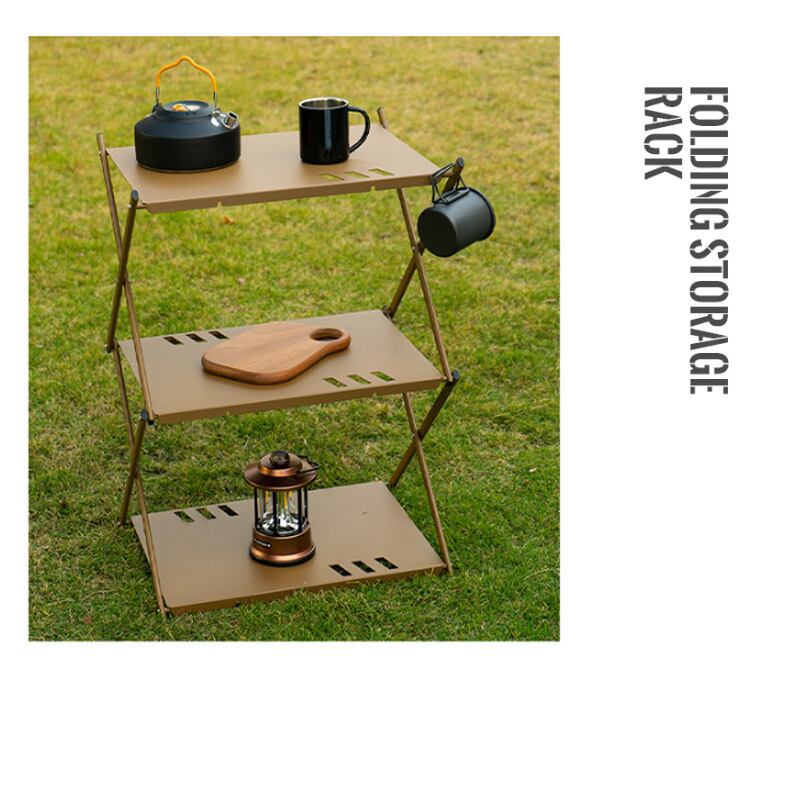 ・アウトドアシーンで大活躍できる3段フォールディングラックです。