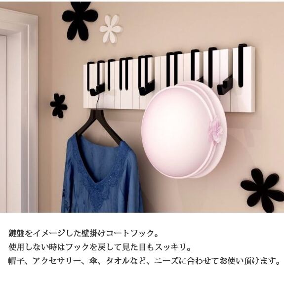 鍵盤をイメージしたユニークなデザイン 壁掛け鍵盤フック
