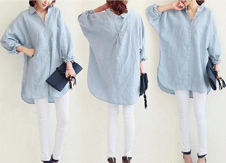 ざっくりとしたゆるシルエットがクセになる、ドロップショルダー&ドルマンスリーブのロングシャツ(ブラウス)。