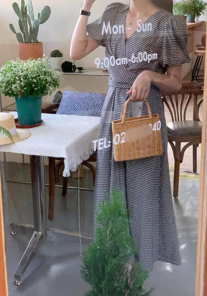 女 レディース 半袖 チェック柄 ロング ワンピース 台型スカート