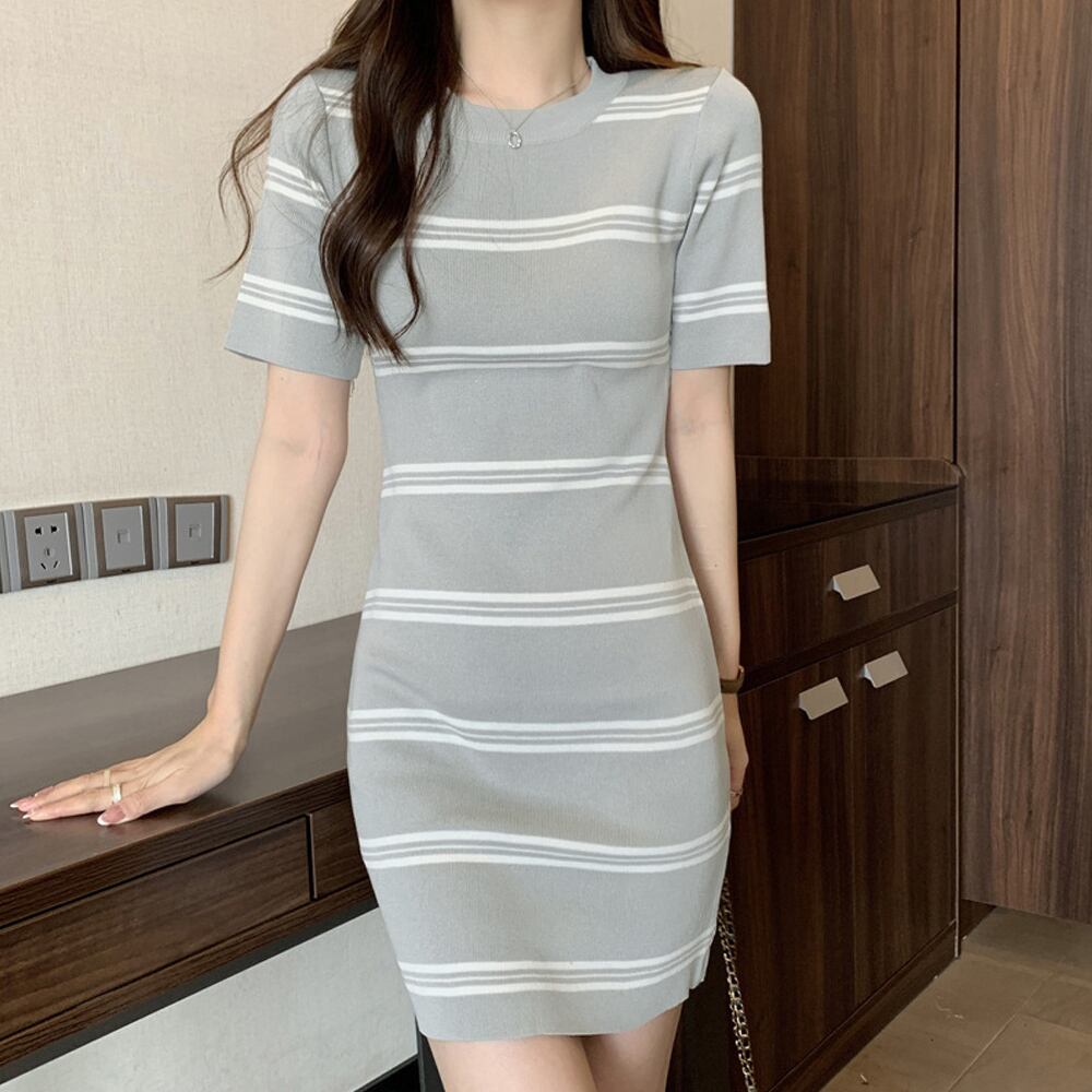 サマーニットワンピース ボーダー柄 韓国