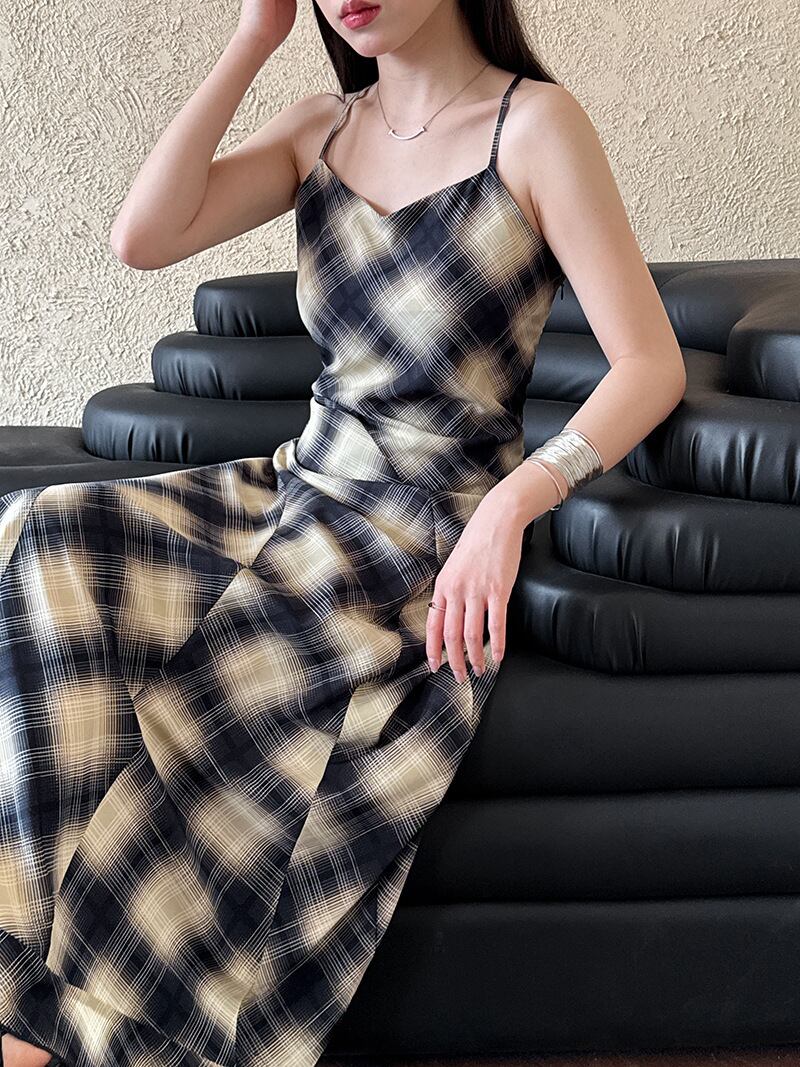 u27266 レディース ワンピース チェック ベスト 2025春夏新作 2色 ノースリーブ