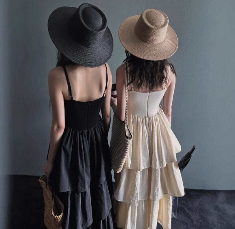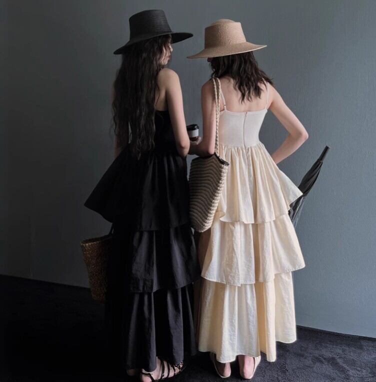 ワンピース ロング丈ワンピース キャミワンピ 異素材 サスペンダー Sweet 可愛い