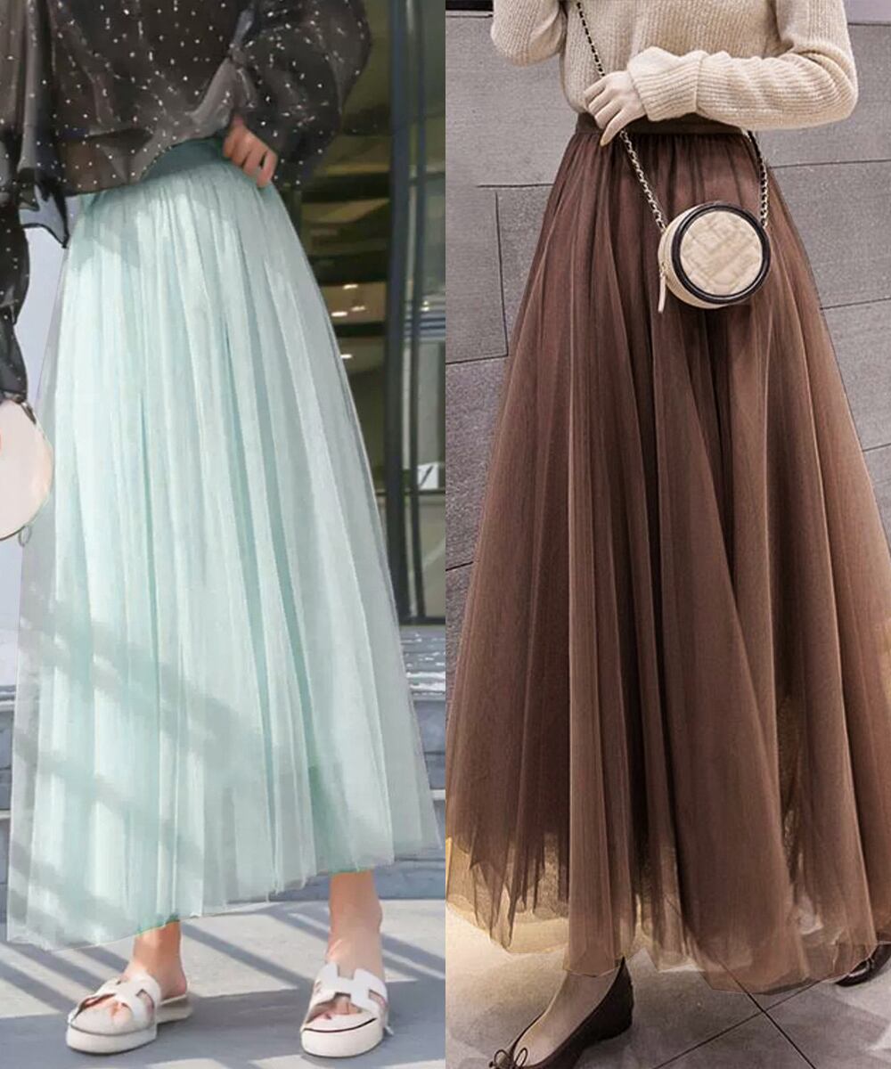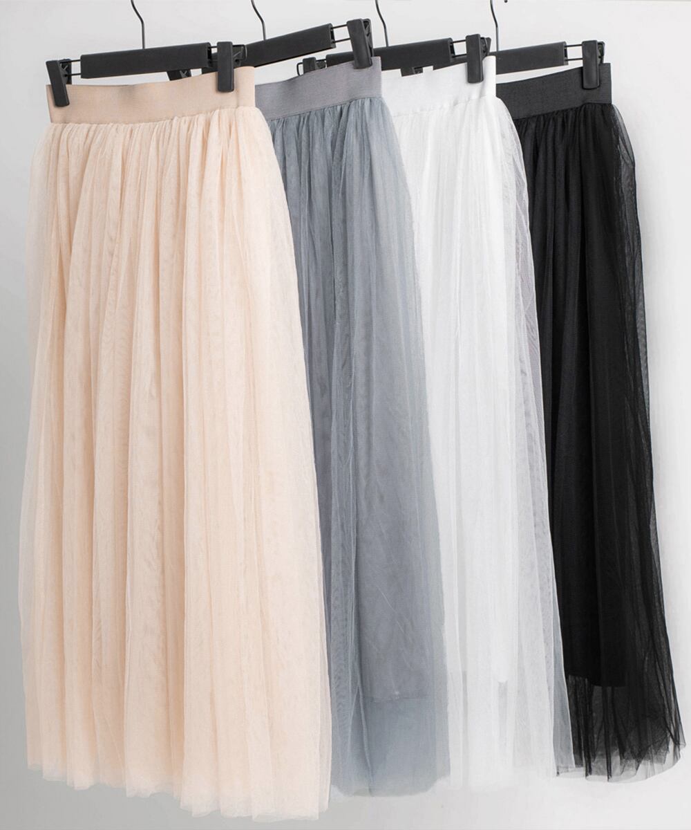チュールスカート ロング マキシスカート ウエストゴム フレアスカート 春夏 ミモレ丈スカート白 グレー ロングスカート