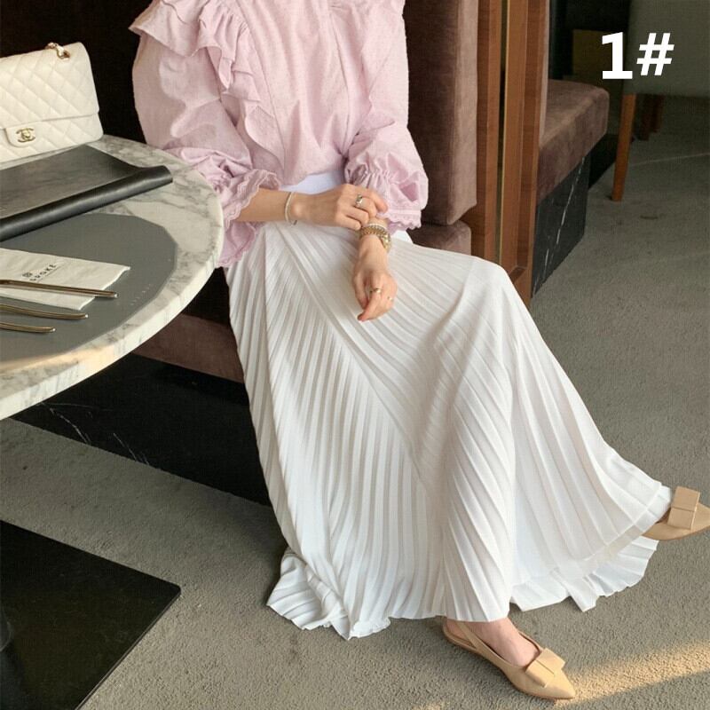 プリーツスカート ロング フレアスカート マキシスカート ロングスカート 体型カバー ウエストゴム