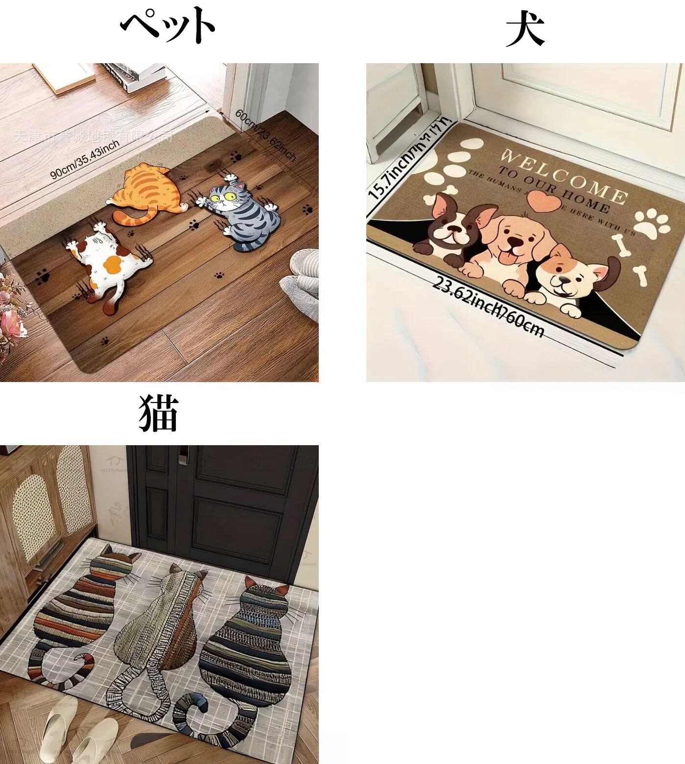 とっても可愛らしい猫・犬のデザインがキュートなマット