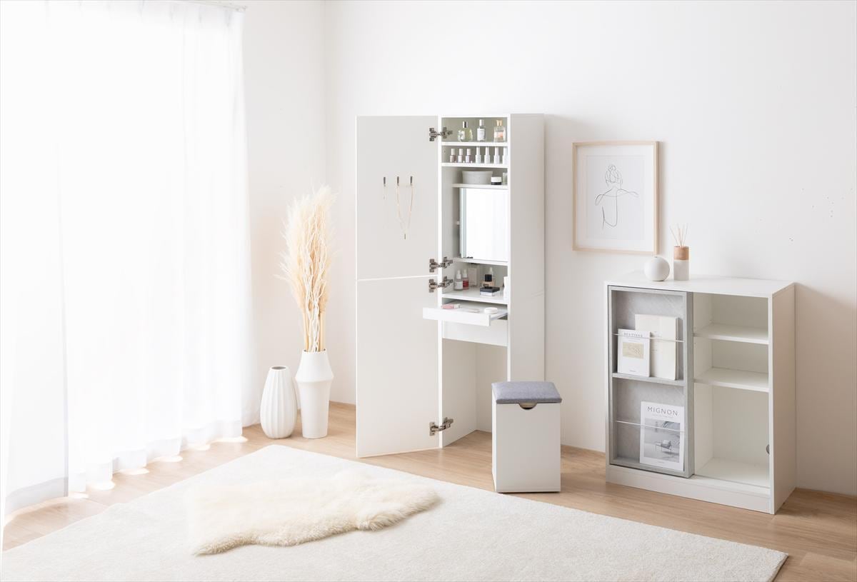 ミラーも収納もドレッサーも、省スペースで叶える『Choa(チョア)』姿見ドレッサー