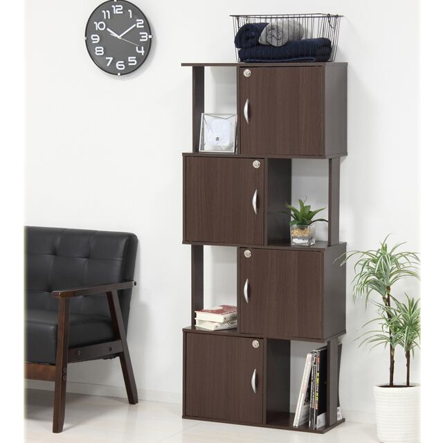 プライバシーを守る安心の鍵付。扉収納とオープン収納の組み合わせがスタイリッシュなラックです。