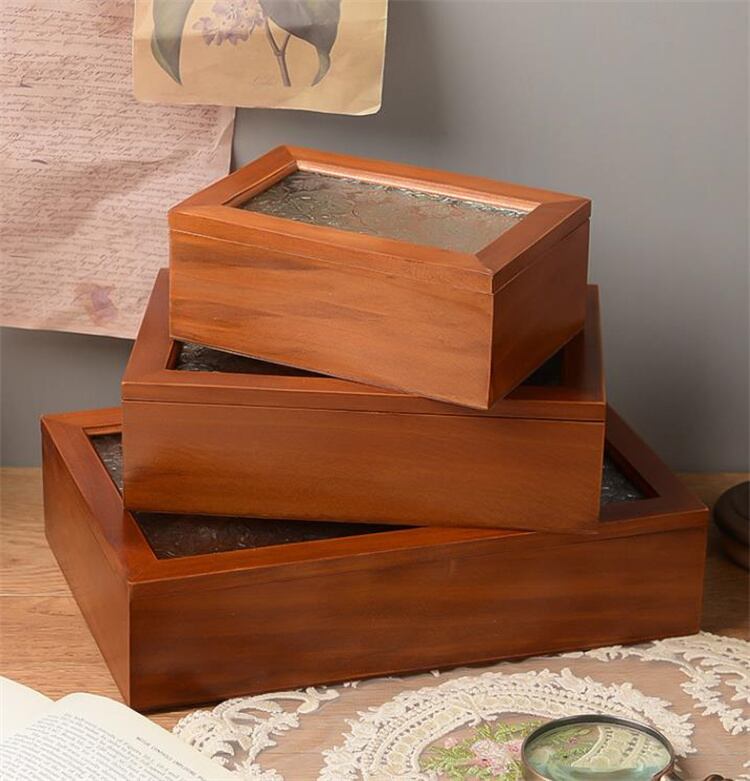 木質収納ケース 化粧品 収納ケース 引き出し付き カイドウ花 ガラス レトロケース