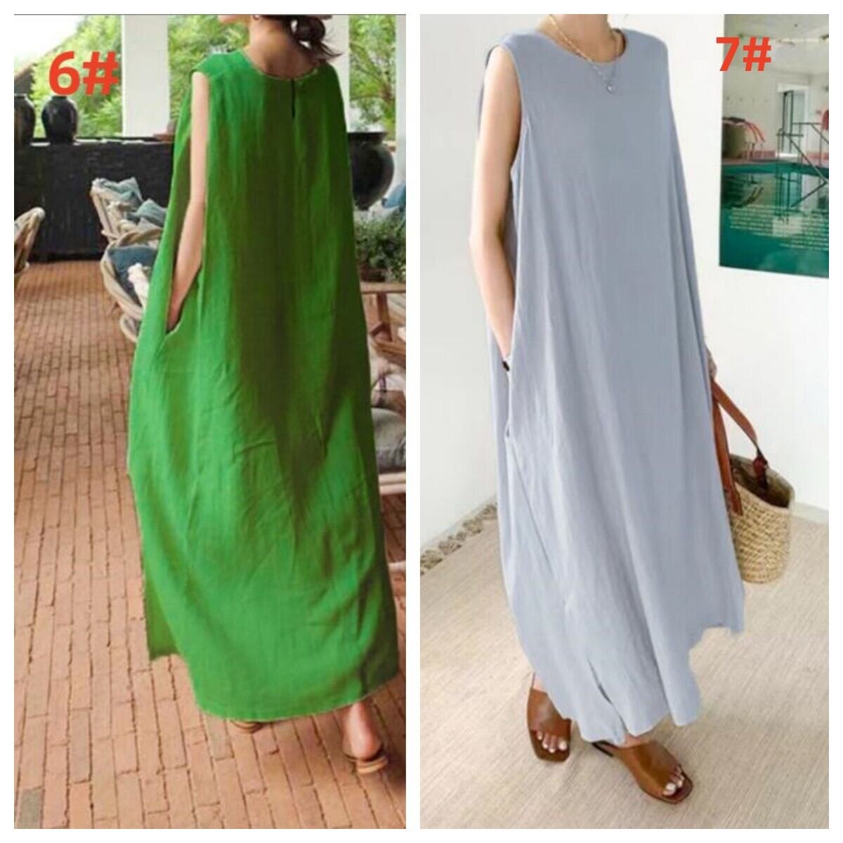 ワンピース レディース ロング丈ワンピース 韓国風 ノースリーブ 体型カバー カジュアル