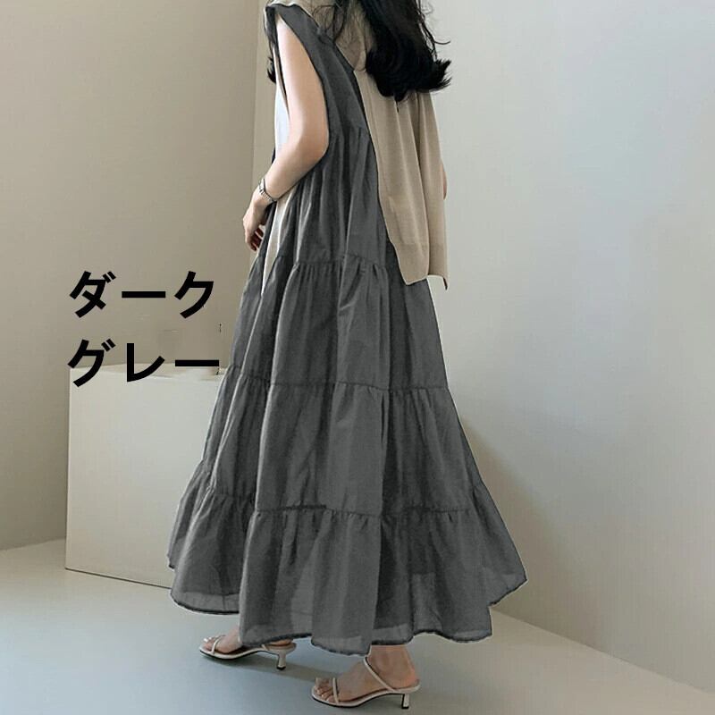 ワンピース レディース ロングワンピース ロング丈 マキシ丈 ノースリーブ ワンピ ラウンドネック 無地
