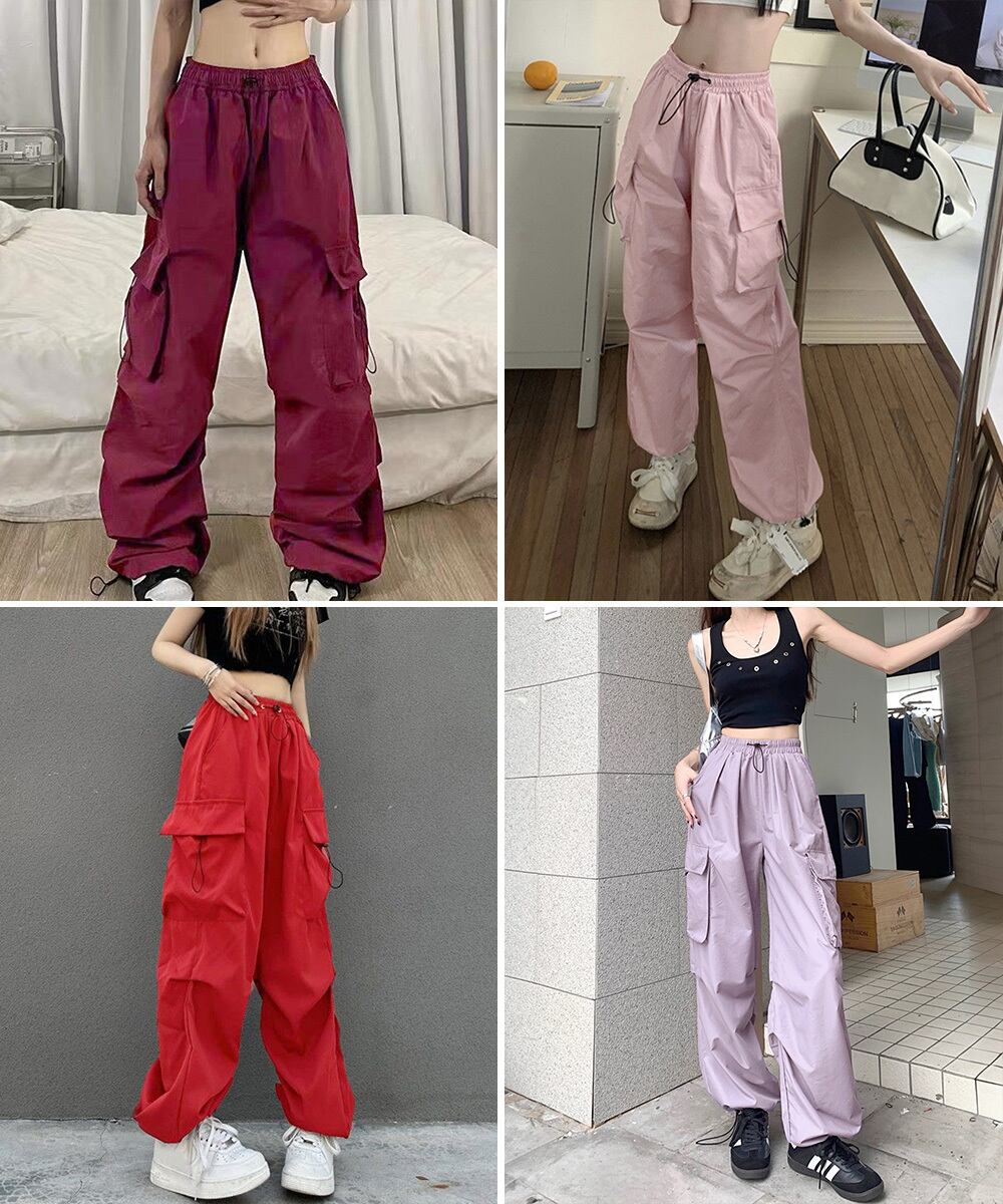 ミリタリーパンツ 薄手パラシュートパンツ 春夏スポーツパンツ ダンス衣装 韓国風 ウエストゴム ストリート ワイドパンツ