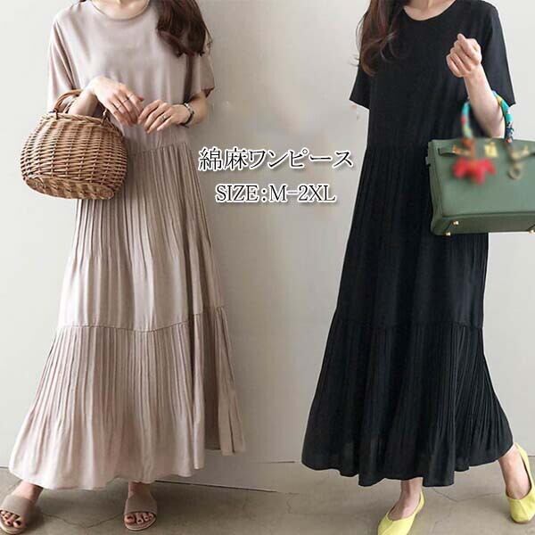 シフォン半袖マキシワンピース