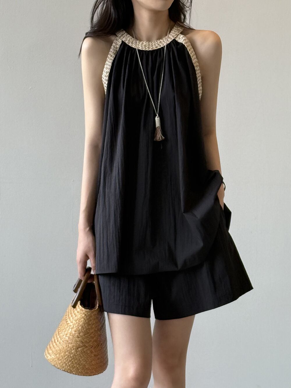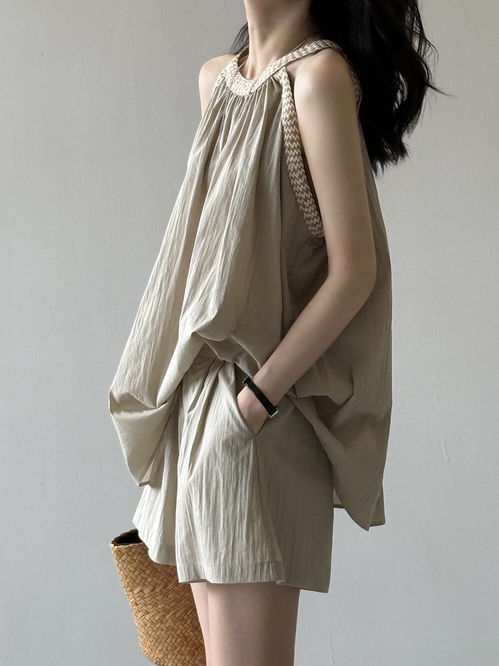 u27957 トップス レディース ベスト ボトムス 2色 ショートパンツ 二点セット 韓国風