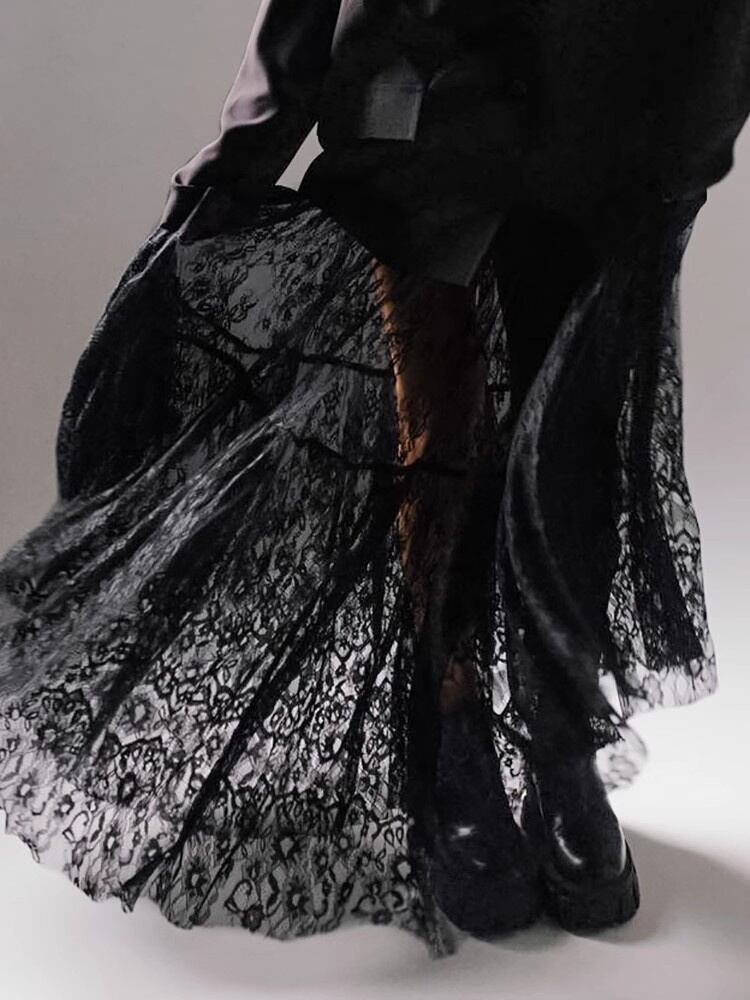 エレガントレースロングスカート ハイウエストデザイン×透け感が女性らしさを演出