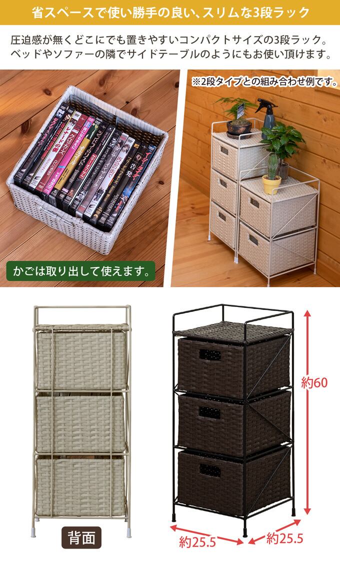 ラタン調 収納ラック 3段 BR/IV/CM/GY