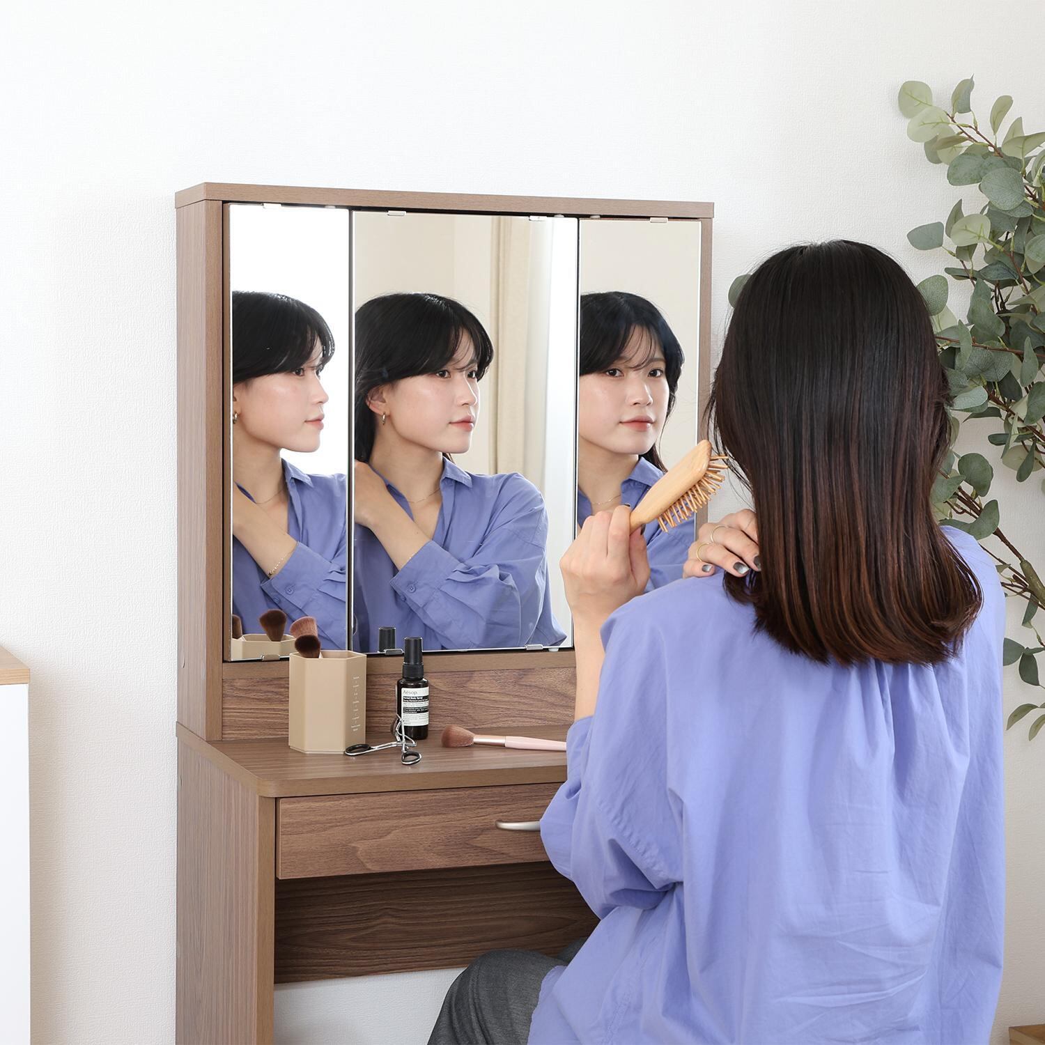 メルル ドレッサー(三面鏡)スツール付き BR【3D】