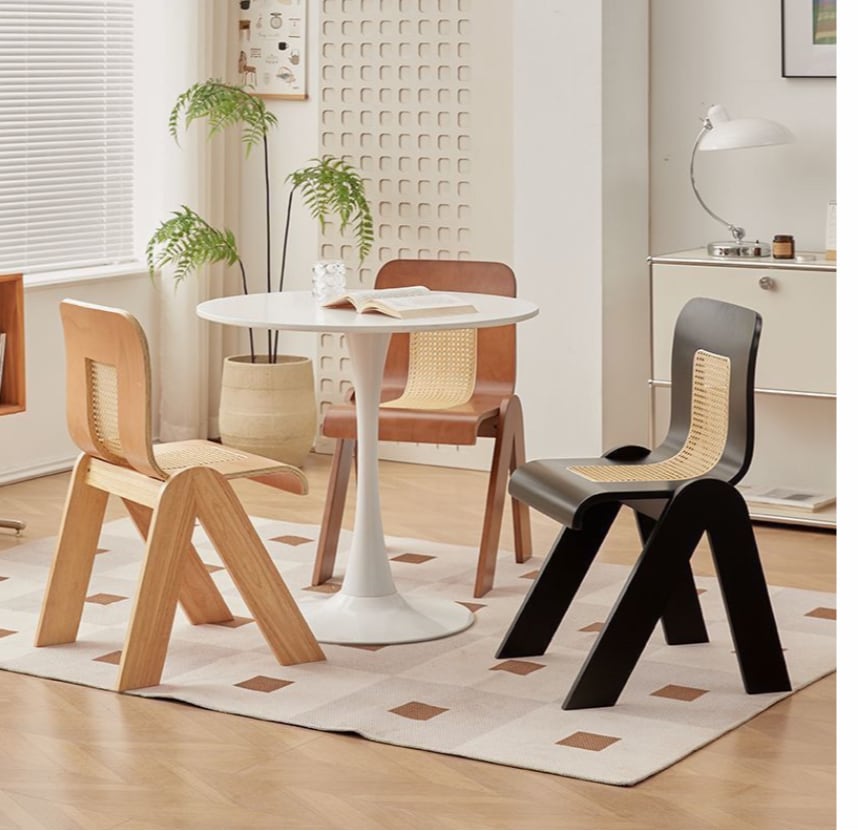 ラタン編みチェア 無垢材 背もたれ 北欧スタイル モダン 椅子 おしゃれ 韓国インテリア オシャレ 天然籐