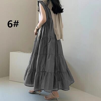 ワンピース レディース ノースリーブ ティアードワンピース ロング丈 オーバーサイズ 体型カバー