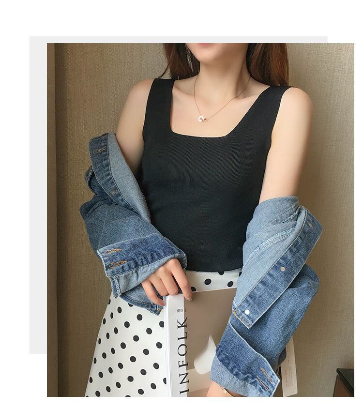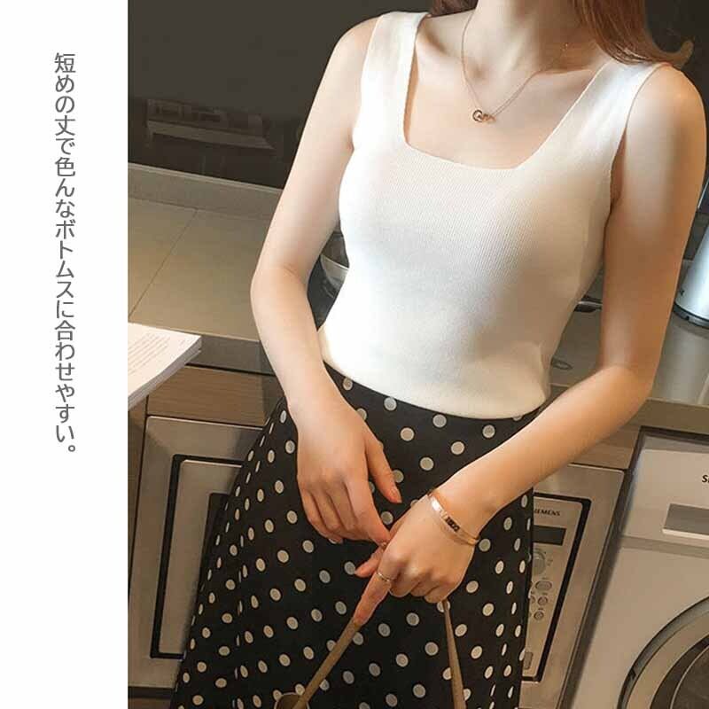 レディース ニット 冷感 タンクトップ ノースリーブ インナー 伸縮性 大人 無地 通勤 スクエア