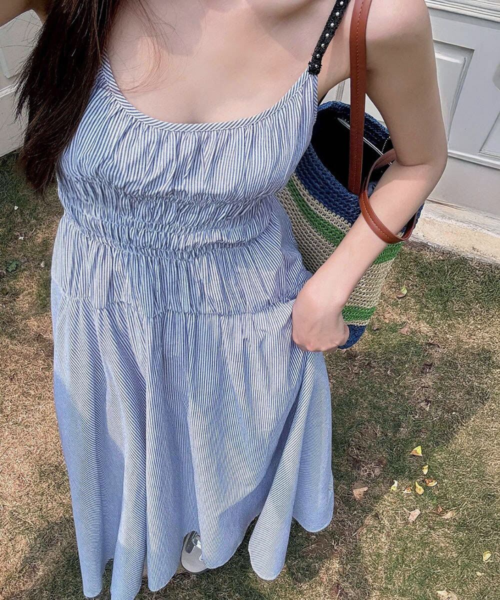 涼しげなストライプ柄が目を引く、大人可愛いキャミワンピース。