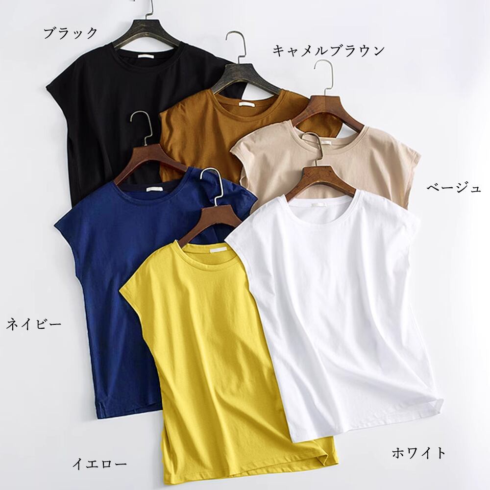 おしゃれ ノースリーブカットソー 無地 クルーネックプルオーバー 韓国ファッショ夏トップス シンプル カジュアルtシャツ